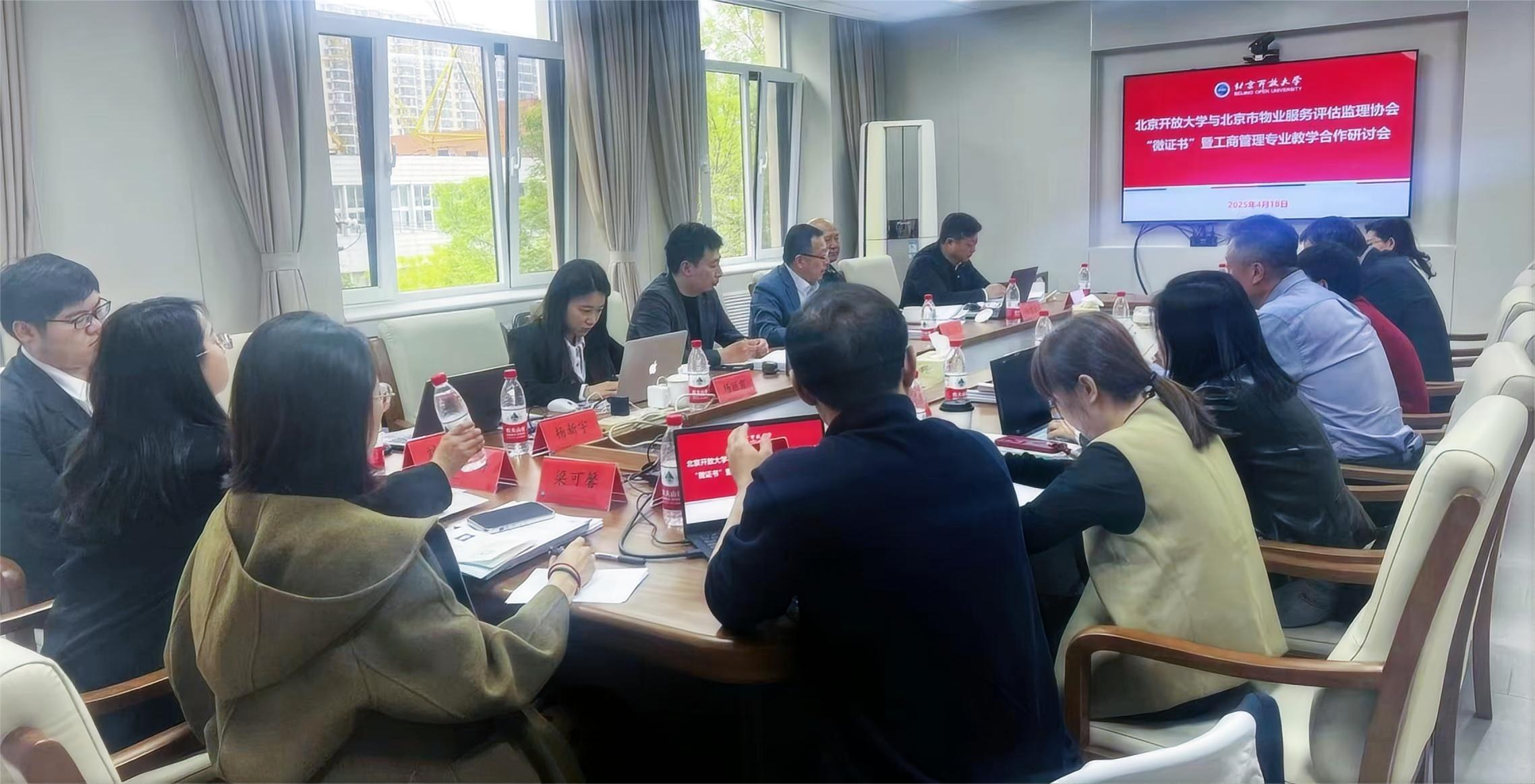 本次会议群贤毕至,北京市物业服务评估监理协会副会长吕杰、秘书长郭忠,北京华夏国育信息科学研究院、华夏国育学校校长吴迪等一行莅临交流研讨。北京开放大学终身教育处处长孙月亚、商学院院长任文召及相关职能部门负责人悉数出席,会议由直属学院院长张惊涛主持,各方围绕“微证书”机制创新、课程体系优化及行业需求精准对接等核心议题展开深度研讨,旨在打造具有示范引领作用的“学历 + 职业”双认证教育新模式,为广大学员搭建更具竞争力与前瞻性的学习与发展平台。